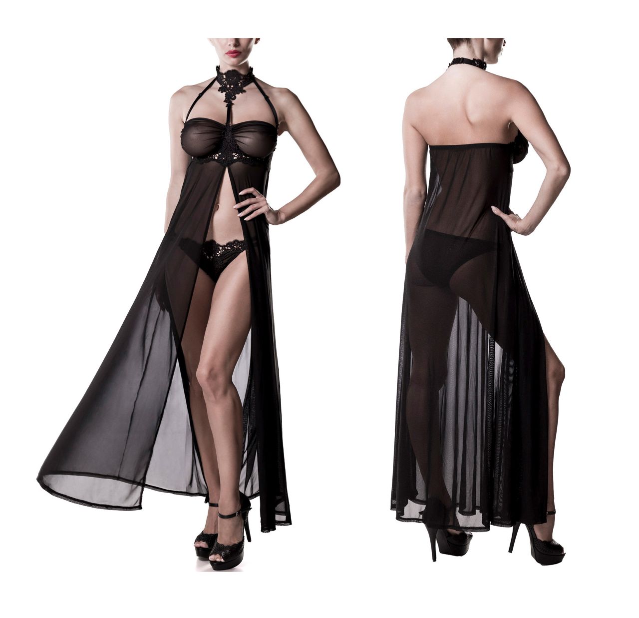 *GREY VELVET 2-tlg.Set (Negligé lang, Höschen) S-M – Gleitgel